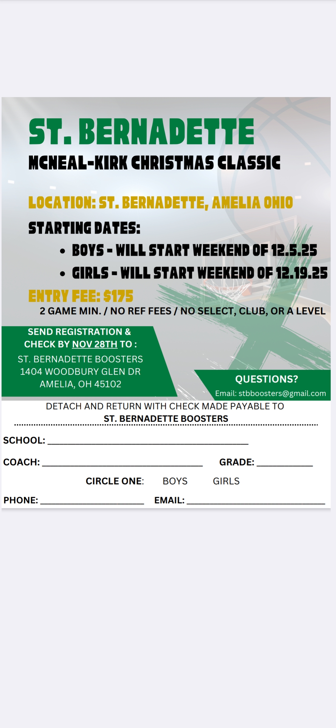 Submit Tourney InfoSt. Bernadette McNeal-Kirk Christmas Classic